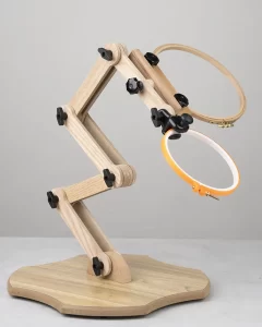پایه نگهدارنده کارگاه، ابزاری است که برای ثابت نگه داشتن کارگاه گلدوزی طراحی شده است. این وسیله معمولاً از جنس چوب یا فلز ساخته میشود و امکان تنظیم زاویه و ارتفاع را فراهم میکند. به کمک آن، شما میتوانید کارگاه را بدون نیاز به نگه داشتن با دست، روی میز یا زمین ثابت کنید.