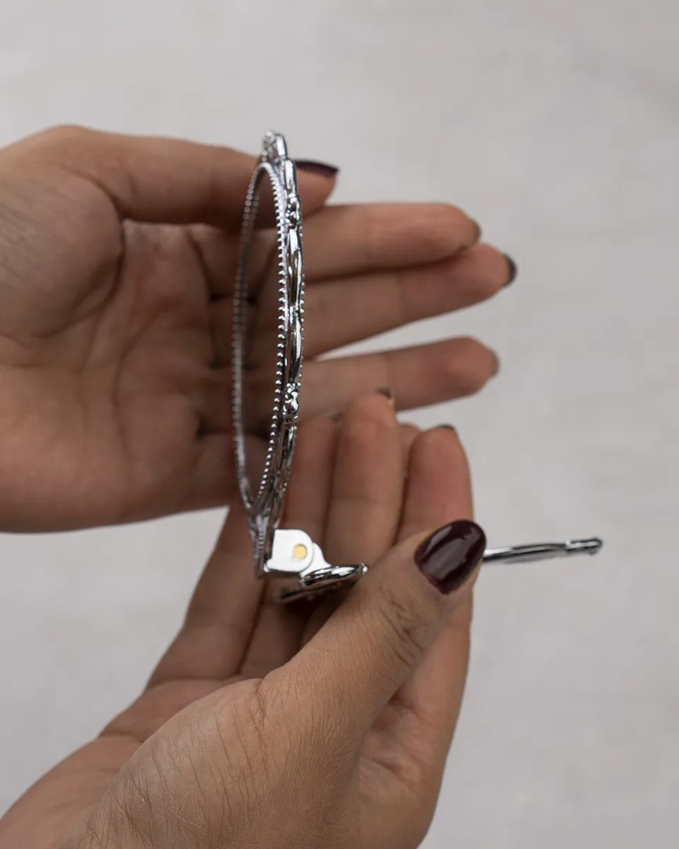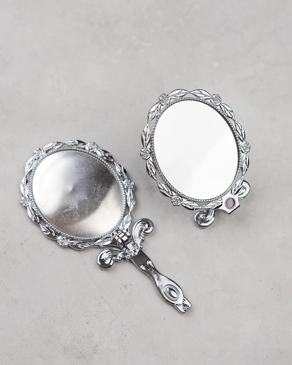 آینه های دسته دار با قالب فلزی که قابلیت مونتاژ کارهای گلدوزی ، روباندوزی، نقاشی و .. به شما میدهد که کار های هنری خاص خود را مونتاژ کنید. دسته این مدل آینه تاشو می باشد و کامل خم میشود.