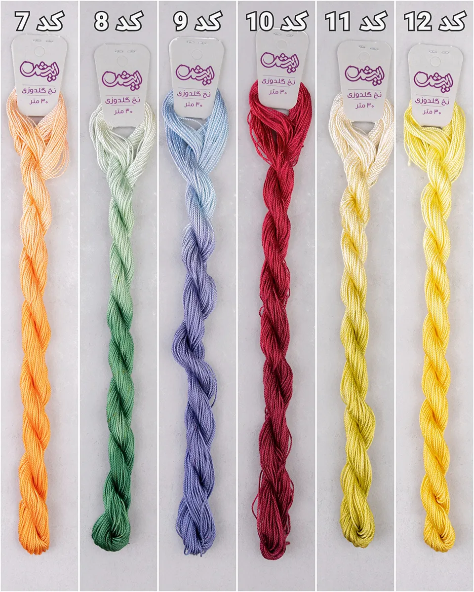 نخ ها مناسب گلدوزی با دست و چند رنگ بودن نخ ها موقع دوخت به طرح زیبایی خاصی می بخشد.
