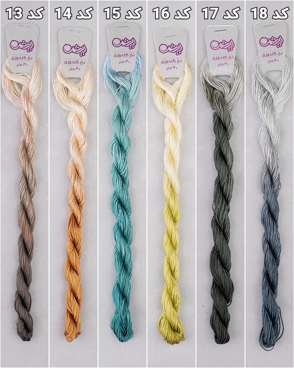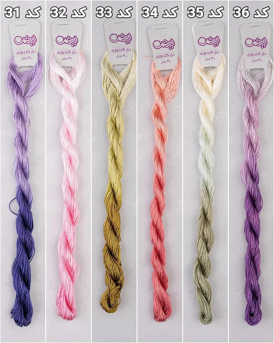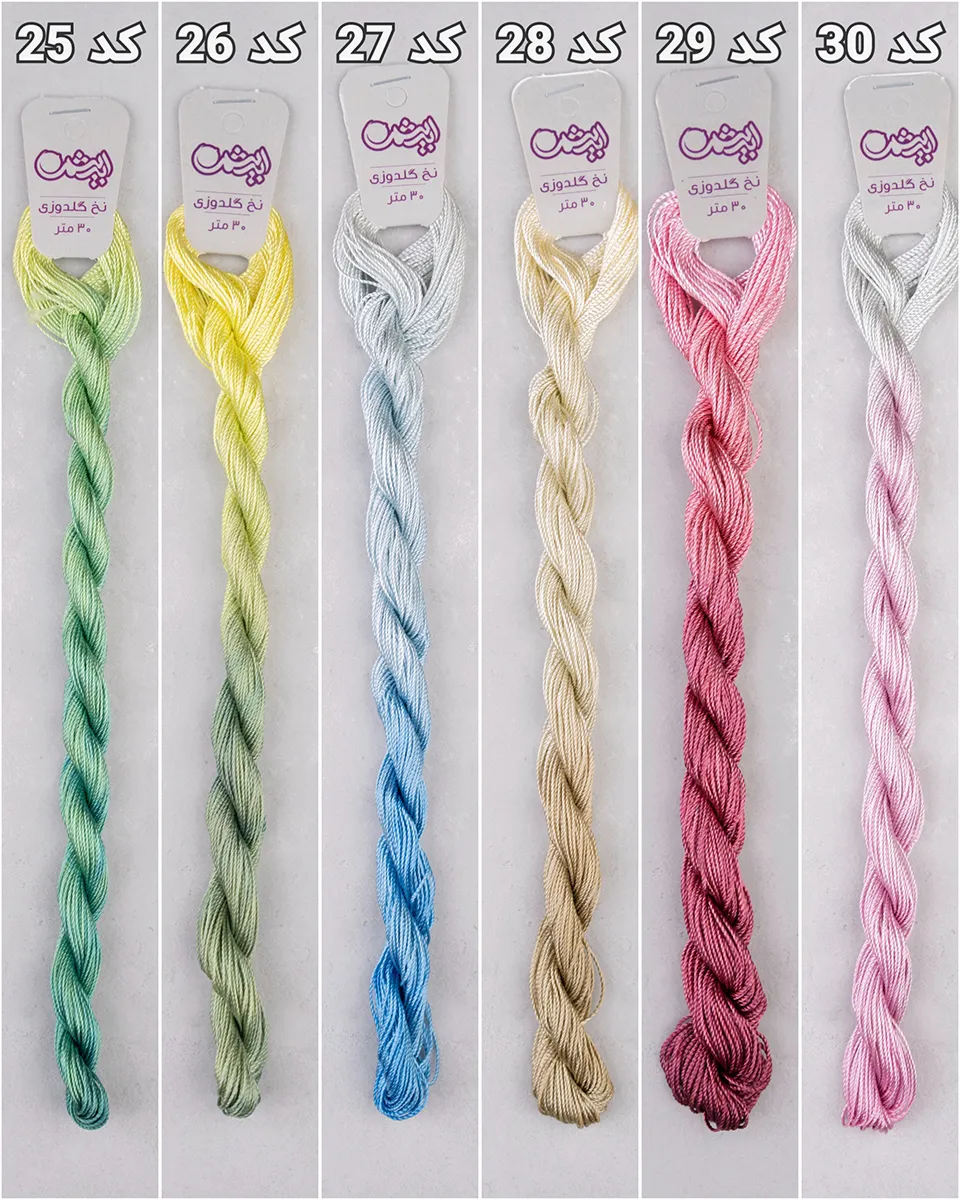 جنس نخ ها ابریشم مصنوعی و طول هر کلاف ٣٠ متر