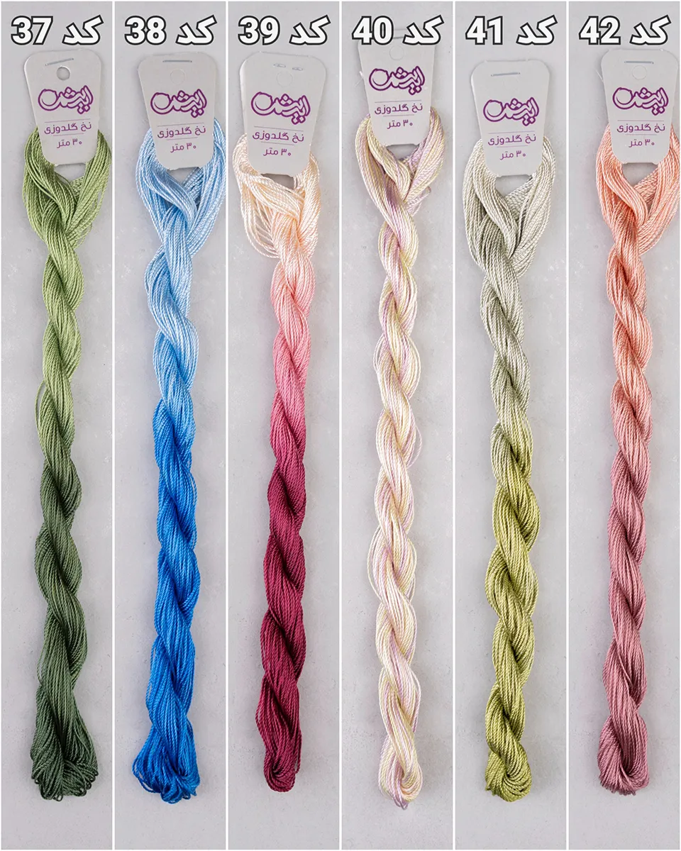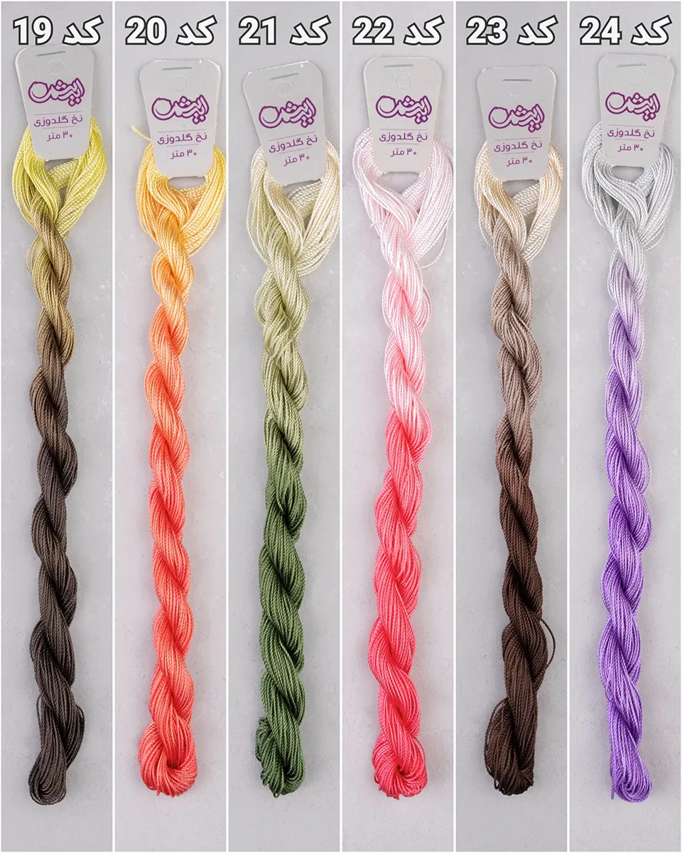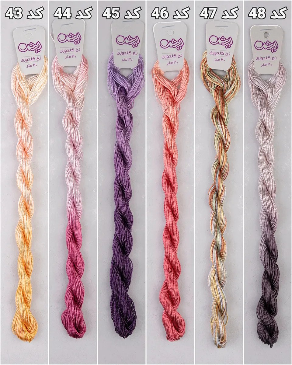 جنس نخ ها ابریشم مصنوعی و طول هر کلاف ٣٠ متر